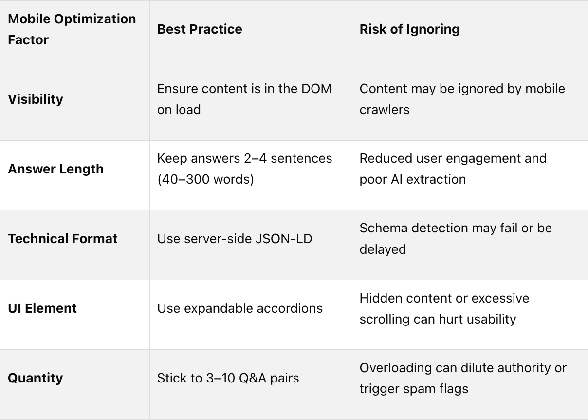 While Google has limited traditional FAQ rich results to authoritative sources like government and health websites, AI search platforms continue to embrace FAQ schema from any high-quality source [5][6]. By focusing on clear formatting and credible content, you can position your site as a go-to resource for AI-driven search results.