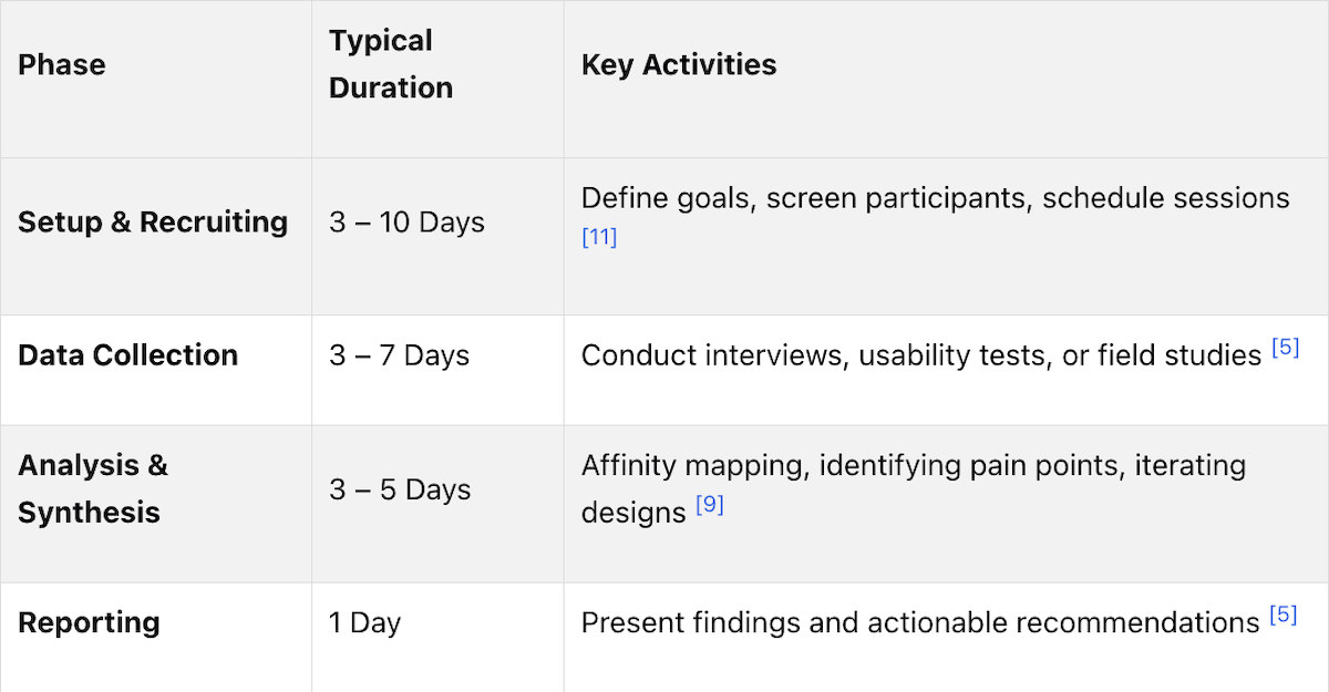 Fixing usability issues during the mock-up stage costs approximately 10 times less than addressing them after coding, and problems identified post-launch can cost up to 100 times more to resolve than those caught during the research phase. Teams using structured research checklists identify 40 to 60% more issues before production compared to those relying on ad-hoc reviews. In 2026, 71% of organizations report having people who conduct research who are not dedicated researchers, making structured planning the primary mechanism for maintaining methodological rigor at scale.