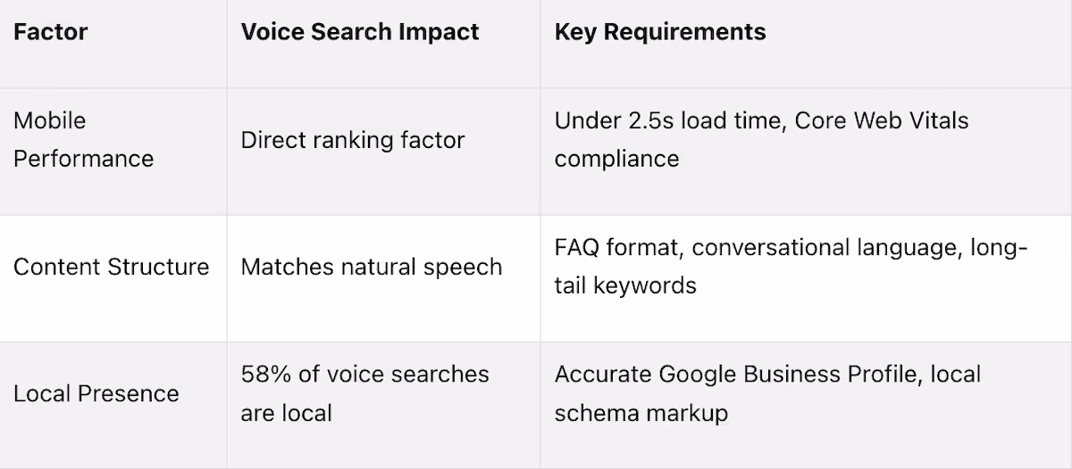 Fast load times are non-negotiable. Voice search users expect quick answers, and pages that take longer than 2.5 seconds to load are unlikely to make the cut[1][3]. Slow-loading sites are often excluded from voice search results entirely, as they fail to meet user expectations.